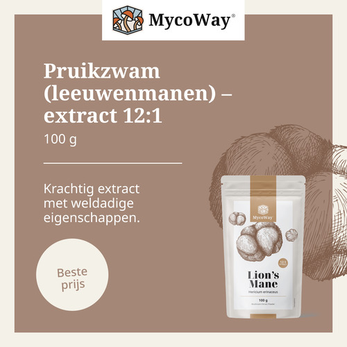 Ingrediënten: extract van pruikzwam (Hericium erinaceus) 12:1 in poedervorm.