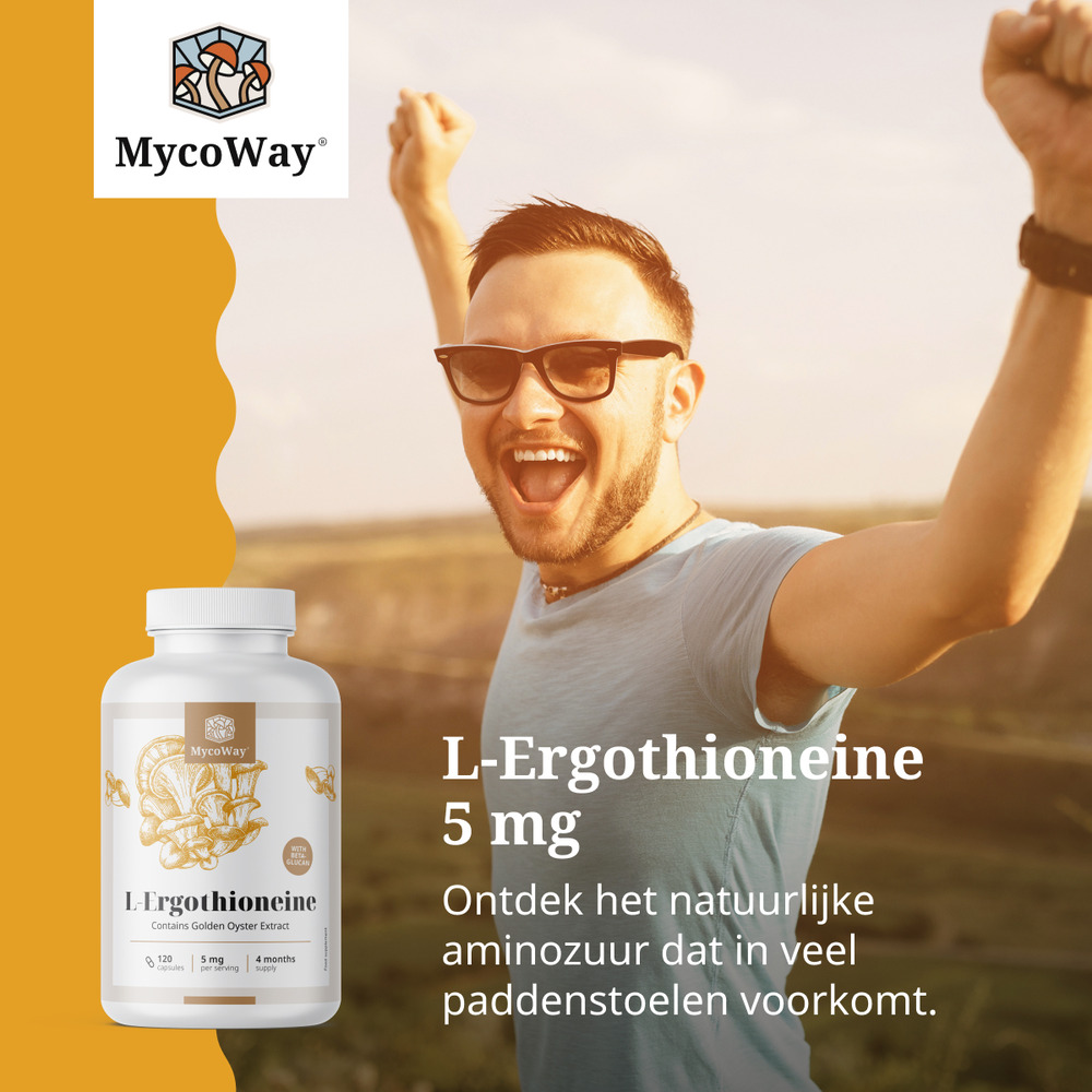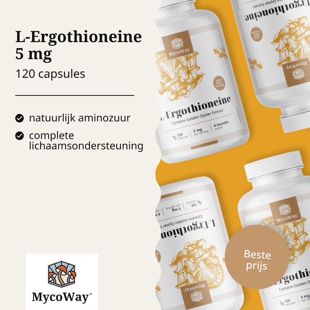 L-Ergothioneine is een zeldzame en bijzondere natuurlijke stof, vaak de “molecuul van een lang leven” genoemd. Het is een belangrijke aminozuur dat vooral voorkomt in bepaalde paddenstoelen, zoals shiitake, oesterzwam en maitake.
